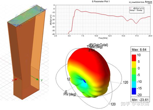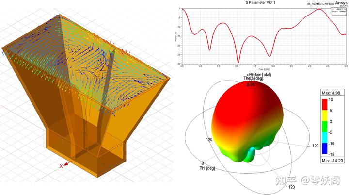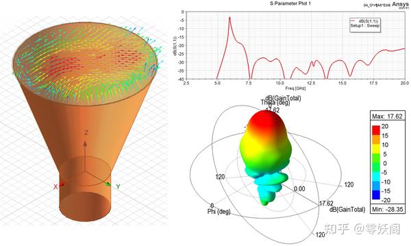 下圖給出了角錐雙脊喇叭天線的仿真結果。